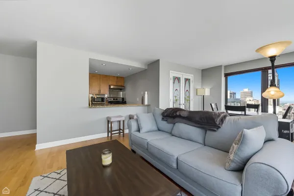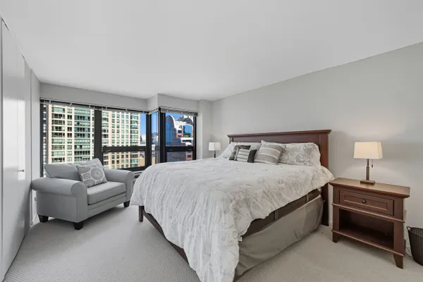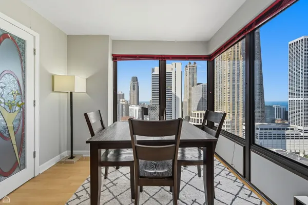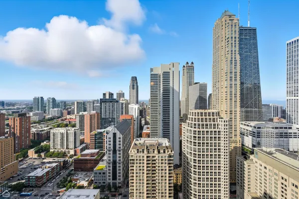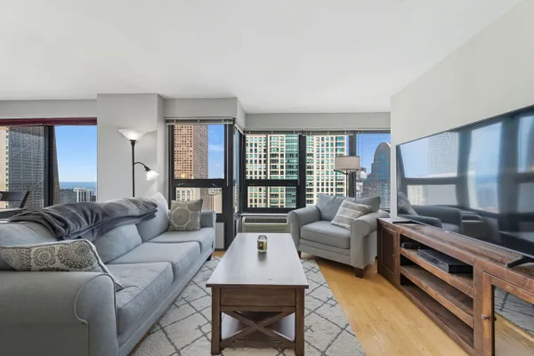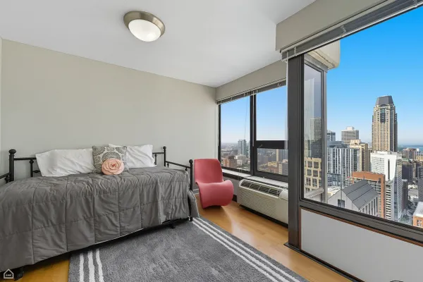 Step into this breathtaking North East corner unit on the 43rd Floor! Where every window frames the mesmerizing Chicago Skyline and clears the surrounding buildings to allow for East and North, Lake Michigan views! Truly WOW views! Enjoy a flowing split bedroom floorplan with open concept kitchen, separate dining area and in-unit washer/dryer. The kitchen offers shaker cabinetry, stone counters, stainless appliances and island with a breakfast bar. Bonus upgrades to the unit includes 19 triple pane windows with upgraded wood window surround insulation to allow for lower utility bills and sound a soundproof environment: Live among it ALL without hearing it ALL! Indulge in the building's extraordinary amenities: a recently updated sundeck complete with gas grills for poolside barbecues, 24-hour gym, an exclusive movie theatre room, a vibrant recreation room with a pool table and comfortable seating, attentive 24-hour door staff, and so much more! Elevate your lifestyle in this stunning City retreat! Garage parking available for $30k.