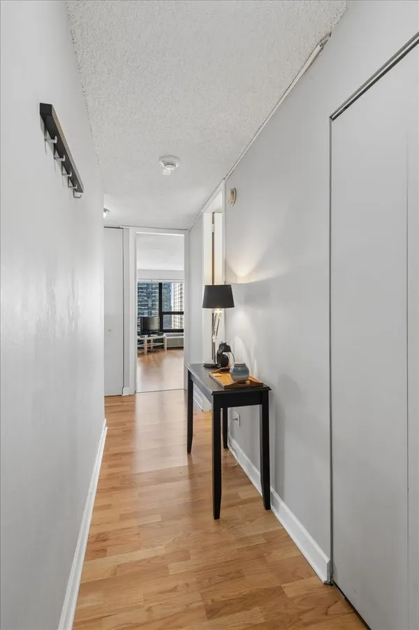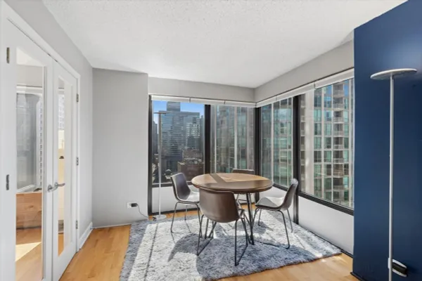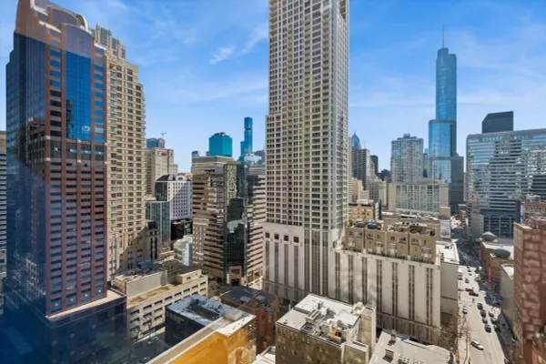 Stunning, Always Sunny SOUTH WEST Corner 2 Bedroom, 1 Bathroom Condo in the Heart of River North. Open Floor Plan Concept with a Split Bedroom Layout and Hardwood Flooring Throughout. In the Heart of the Condo Sits the Updated Kitchen with 42" Shaker Style Cabinetry, Stainless Steel Appliances, Granite Counters with a Huge Breakfast Bar Open to the Living and Dining Rooms. Spacious Living Room with Breathtaking 180 Wrap Around City Views that are Protected for the Foreseeable Future. Separate Dining Flows Seamlessly Into the Living Room & Kitchen Space, Perfect for Entertaining. Oversized Primary Suite Spacious Enough to Fit a King Sized Bed, Large Dresser and Work From Home Office with a Wall of Closets. Spacious 2nd Bedroom with Glass French Doors & Staged with a Queen Sized Trundle Bed. Updated Bathroom with Shaker Style Vanity with Granite Counters, 2nd Vanity/Make-Up Vanity, Glass Shower Doors + Linen Closet for Additional Storage. Other Features In-Unit Laundry (Cannot Install if Not There), Custom Window Treatments Throughout and Deeded Parking Space for Additional $30k. Assessments Include Everything Except for Electric - Bulk Cable Package, High Speed Internet, Water & All Building Amenities. Outstanding Amenities Include 24-Hour Doorman, 2 Story Sundeck & Outdoor Pool, Comprehensive Gym, Biz Center, Movie Theater & Party Room. Fantastic River North Location with Everything Right Outside Your Front from The Mag Mile Shopping, to the Best Restaurants in the City & the Lakefront Path.